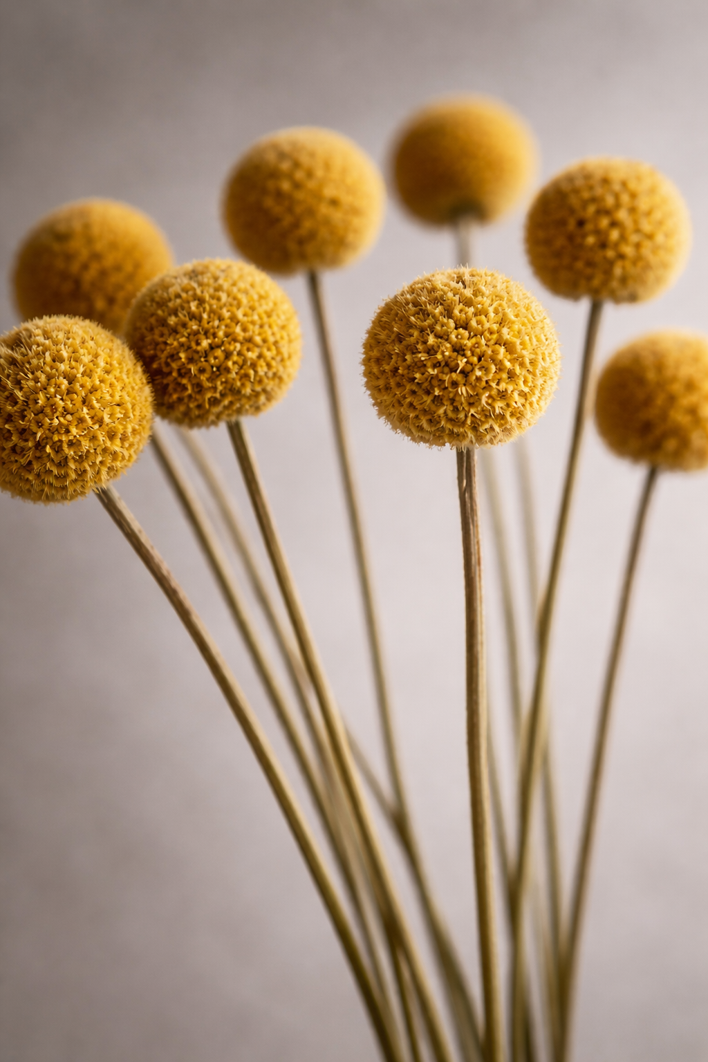 Organically preserved Craspedia (Billy Buttons) on stem, naturally sourced and processed without chemicals or dyes.