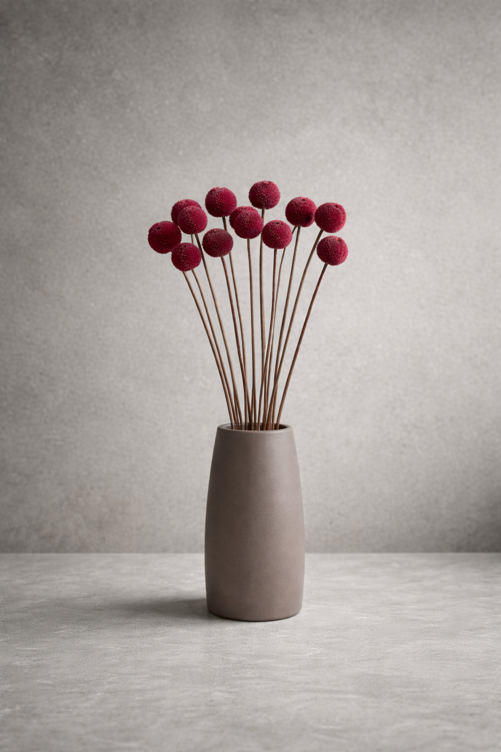 These striking spherical heads on slender stems offer bold, textural interest and cheerful form, retaining their vibrant colour and structure for 1–3 years with zero maintenance – no water, no wilting, no fading.